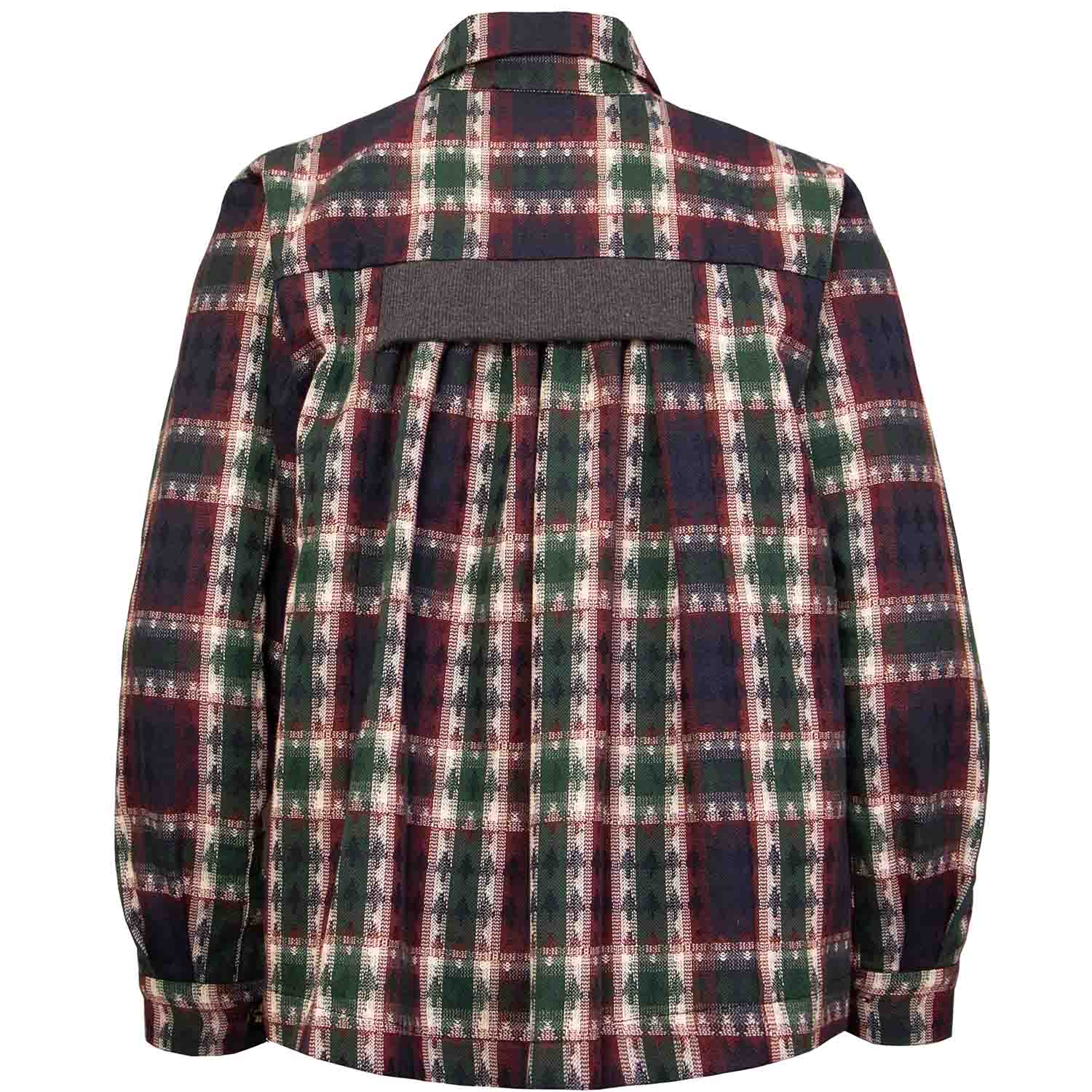 This festive shirt brings a touch of nostalgic charm with its classic tartan pattern. The unique details, such as pleats and ribbed panels under the back placket, add an elegant yet playful twist to a traditional design. Coconut shell buttons engraved with our signature moth logo give the shirt a distinctive and artistic finish, showcasing the thoughtful craftsmanship that goes into each piece. -